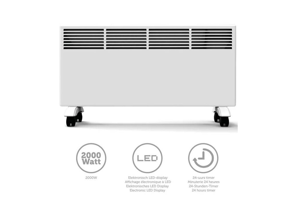 Díky svým pokročilým funkcím a modernímu designu posouvá tento elektrický ohřívač vytápění na novou úroveň. Elektronický LED displej poskytuje intuitivní ovládání, zatímco 24hodinový časovač a týdenní časovač vám poskytují úplnou kontrolu nad teplem ve vaší místnosti.
