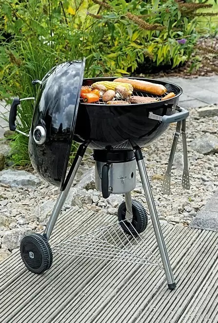 Pomocí kotlového grile potěšíte nejen sebe, ale i vaši rodinu a přátele. Grilovací plocha o průměru 57 cm zvládne vše, na co budete mít chuť. Je určen na dřevěné uhlí, navíc všechen popel padá do nádoby k tomu určené. S 2 kolečky jej můžete snadno přemisťovat, třetí noha poté zajistí stabilitu. Odkládací plocha pod grilem je skvělým doplňkem pro vaše náčiní či koření.