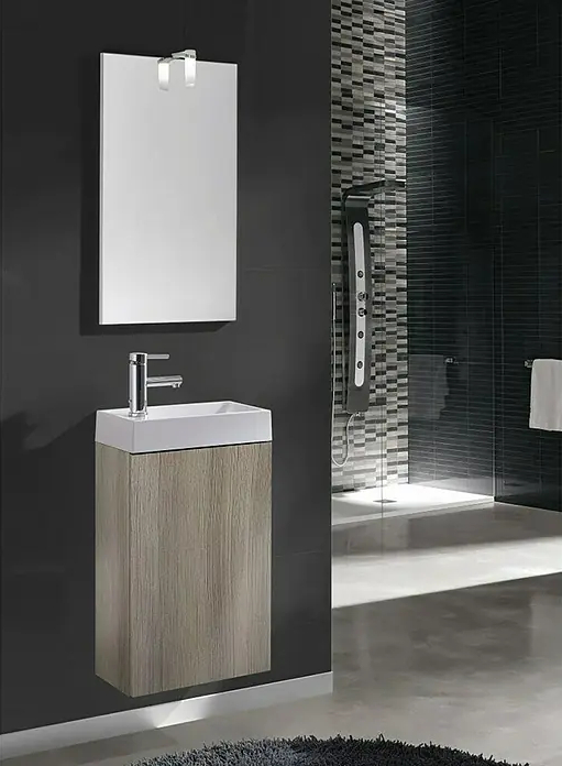 Dodejte své koupelně moderní a elegantní vzhled s koupelnovou sadou Riva Young. Tento kompaktní set nabízí praktické řešení „vše v jednom“ – stylové umyvadlo s integrovaným LED zrcadlem a skříňkou pod umyvadlo v atraktivní imitaci dřeva teakově šedé barvy. Matný povrch působí elegantně a přirozeně doplní každý moderní interiér.