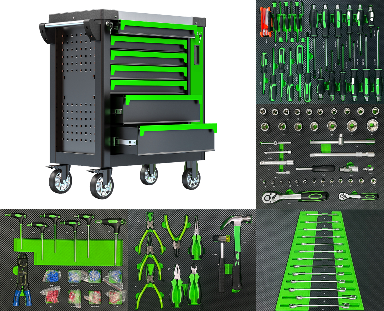 - Kovový pojízdný dílenský vozík s 263 ks nářadí a 7 šuplíky BestBerg BBTC-703T / SPCC ocel