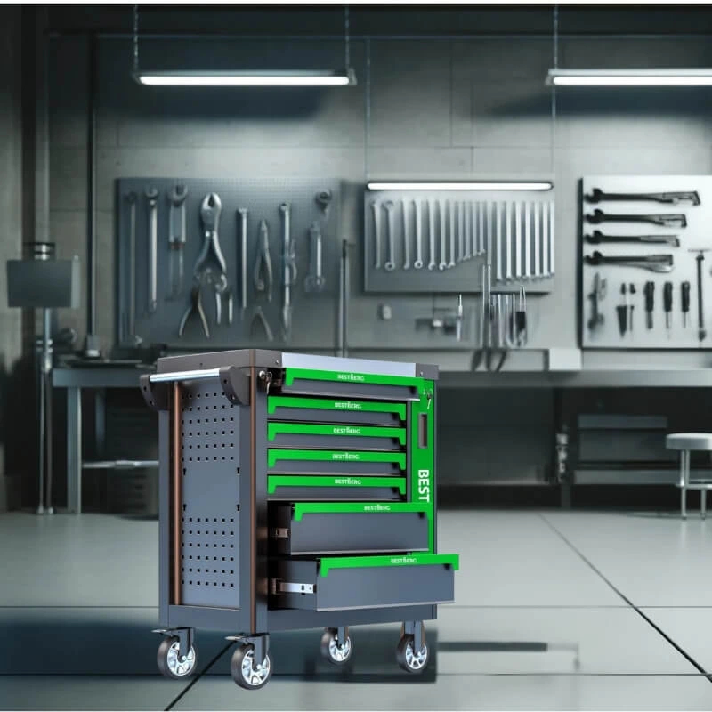 Usnadněte si práci v dílně či garáži díky vybavenému dílenskému vozíku BestBerg BBTC-703T. Tento vozík je vyrobený z odolné SPCC oceli se 7 prostornými šuplíky. Zajistí přehlednou organizaci vašeho nářadí a snadné přesouvání. A to i s opravdu těžkým nákladem.