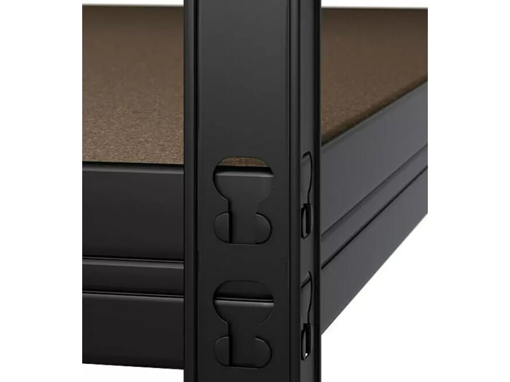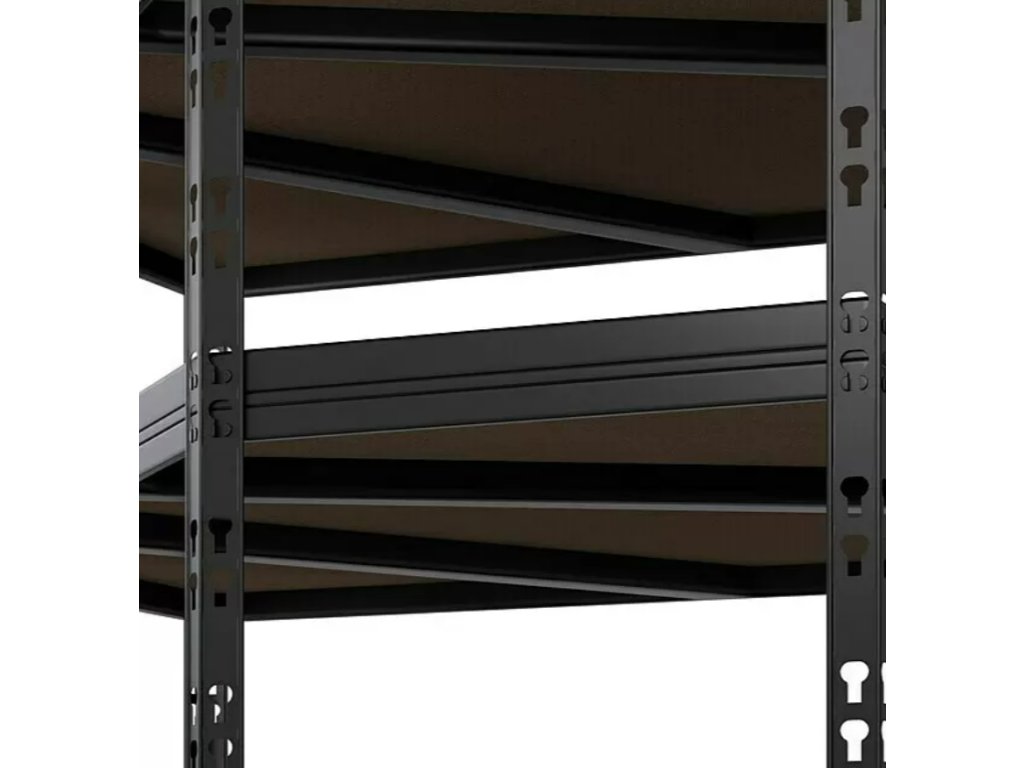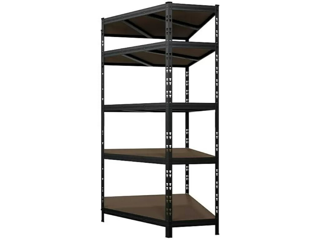- Kovový rohový regál / 180 x 75 x 45 cm / nosnost 200 kg/police / 5 polic / kov / černá