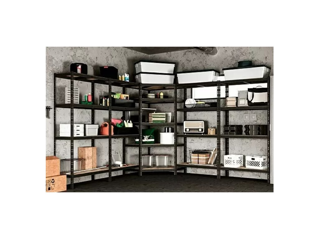 Kvalitní kovový odolný rohový regál je jedním z nejoblíbenějších regálů a to nejen díky skvělému poměru ceny a výkonu. Má velkorysé rozměry 180 x 75 x 45 cm (V x Š x H), černý lakovaný povrch a nabízí dostatek prostoru pro uložení nejrůznějších předmětů. Díky tomu je ideálním regálem do kanceláře, sklepa, garáže nebo dílny.