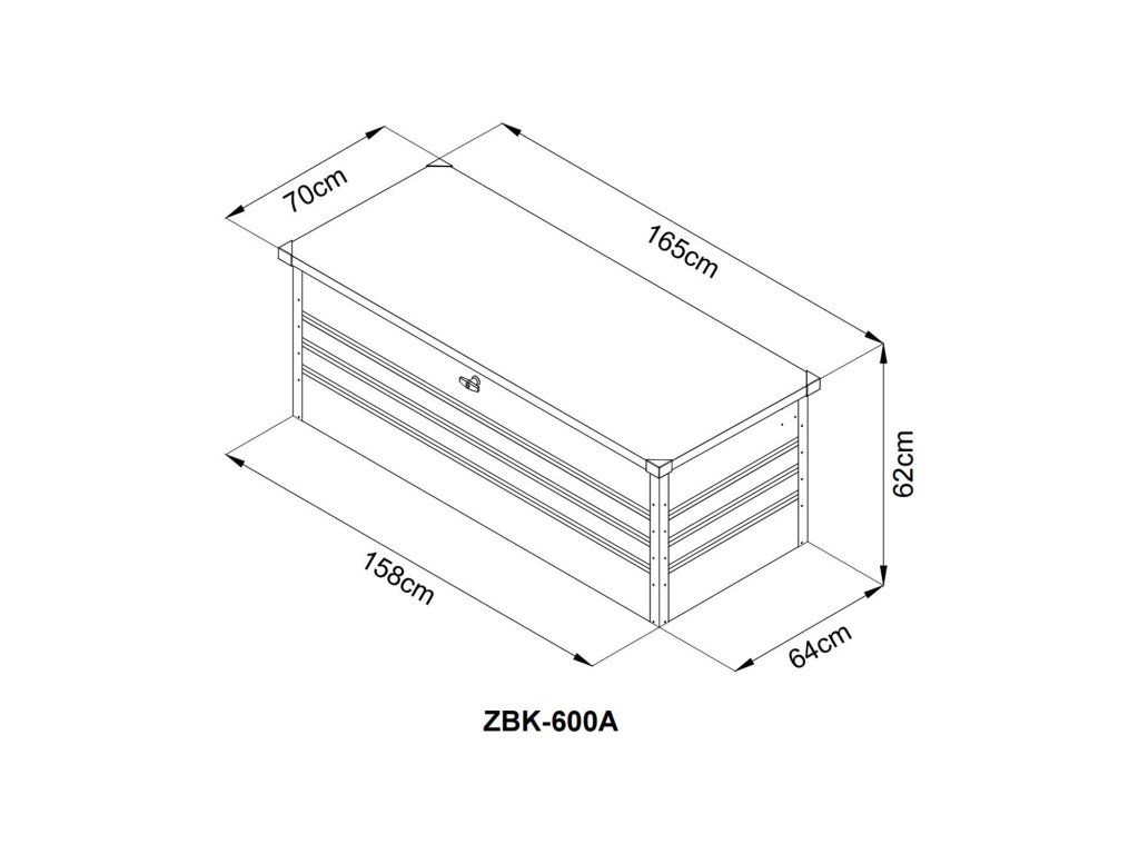 - Kovový zahradní úložný box BestBerg ZBK-600A / 600 l / 165 x 70 x 62 cm / šedá