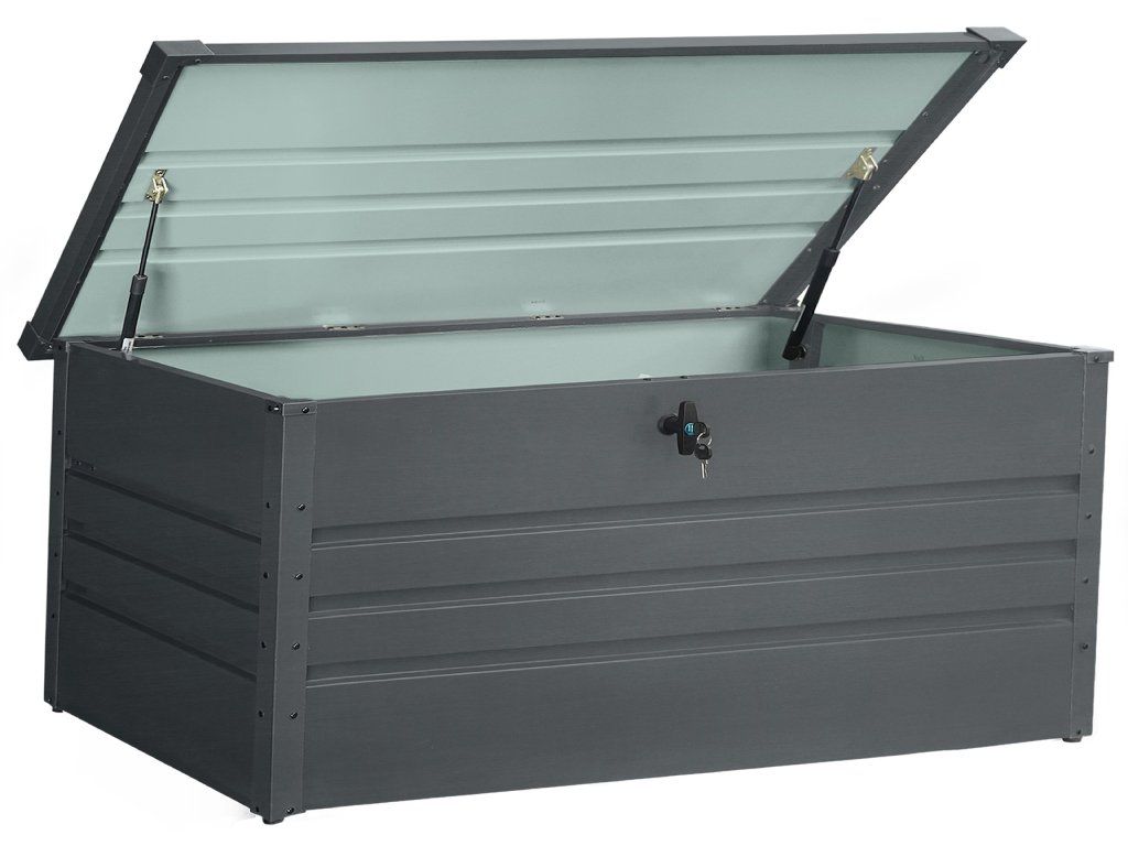 Zapomeňte na neustále přenášení venkovních textilovin domů a pak zase zpátky na zahradu. Do praktického kovového boxu pohodlně uložíte podsedáky, polštáře, deky i další textilní doplňky. Díky praktickému plechovému materiálu můžete box bez problému nechat venku a budete mít jistotu, že vše uvnitř zůstane v suchu i během bouřek a velkých dešťů. Bonusem je i praktický zámek s klíčem, který vám zajistí, že se do boxu nikdo jiný nedostane.