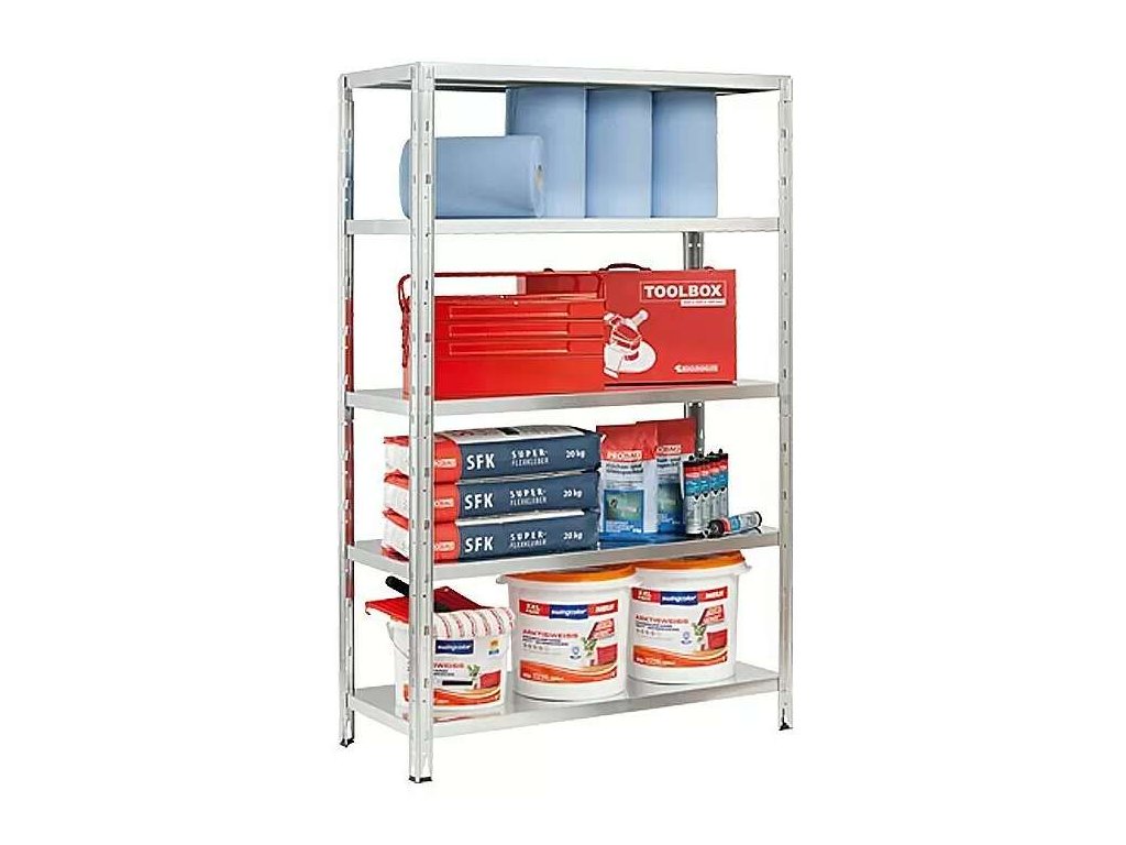 Bezšroubový policový díl má 5 kovových polic, z nichž každá může být naplněna až 200 kg s rovnoměrným rozložením hmotnosti. Vysoká kvalita a vysoká stabilita zajišťují dlouhou životnost a bezpečnost. Odolná police tak nabízí profesionální úložný prostor na vysoké úrovni.