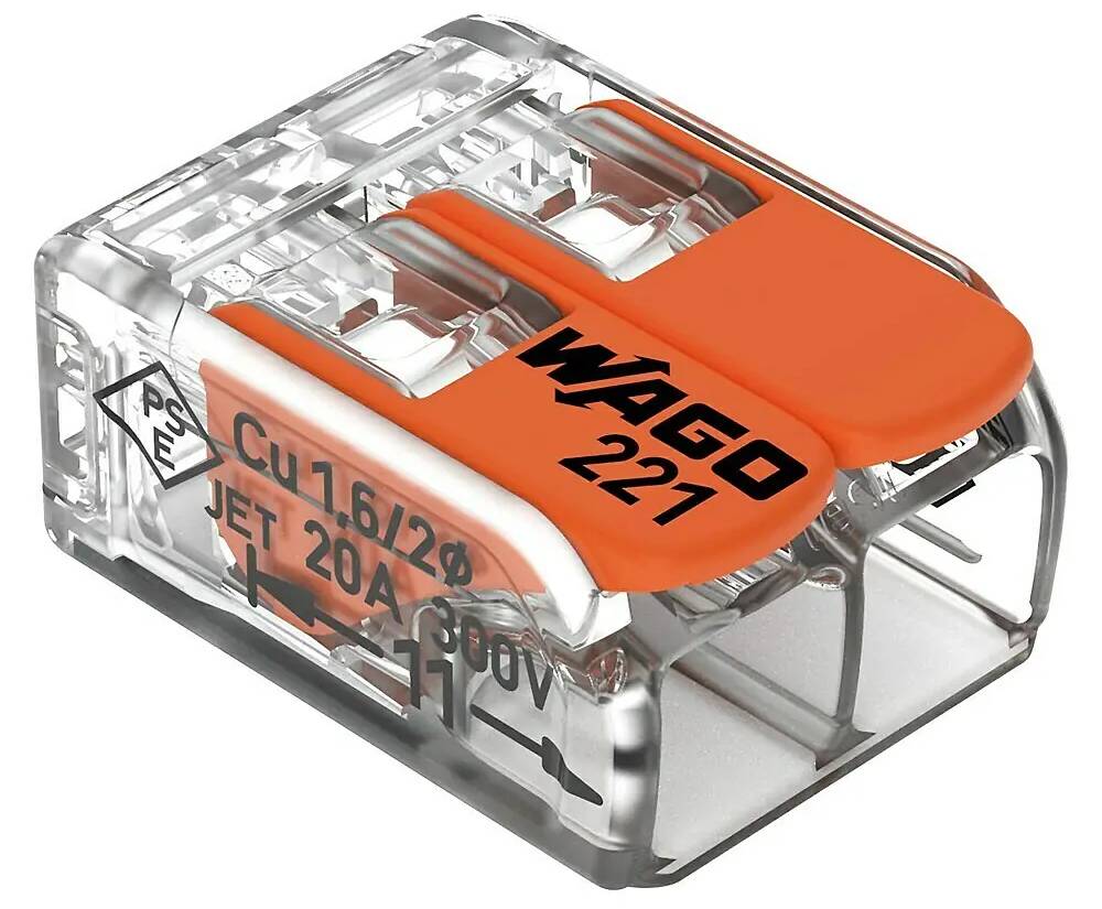 WAGO Compact 221‑412 je praktické a spolehlivé řešení pro spojování vodičů o průřezu 0,14 mm² až 4 mm². Díky jednoduchým páčkám lze vodič bezpečně upevnit bez šroubování – stačí páčku otevřít, vložit vodič a páčku zavřít. Svorka je kompaktní, takže šetří místo v instalačních rozváděčích, a zároveň umožňuje připojení dvou vodičů v jednom spoji.