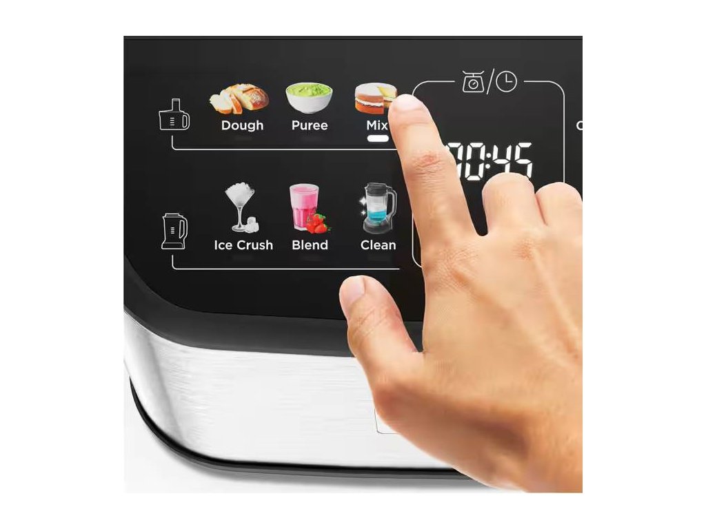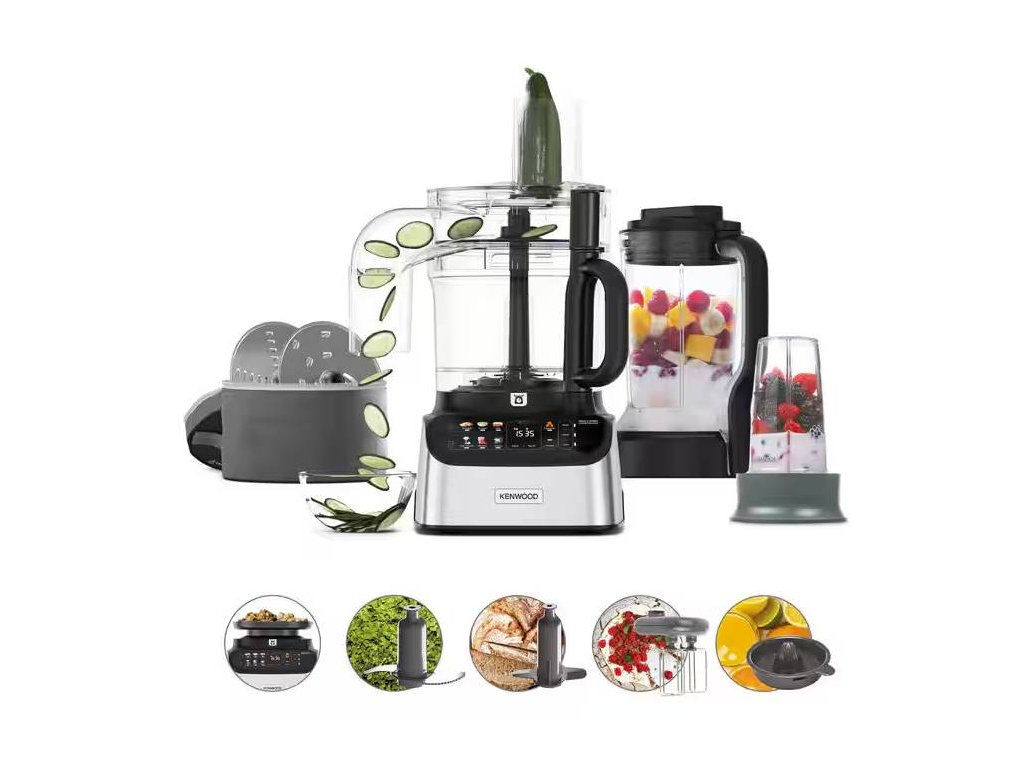 Kombinace kuchyňského robotu 2 v 1 a stojanového mixéru Kenwood MultiPro One Touch FDM73.850SS vytváří téměř nekonečné možnosti přípravy. 6 přednastavených programů vám pomůže rychle se zorientovat a přiblížit vám požadovaný recept. Barevný dotykový displej usnadňuje ovládání a snadno se čistí.
