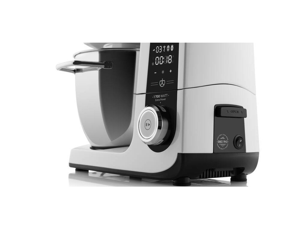 - Výkonný 1700 W kuchyňský celokovový robot v perleťově bílé barvě