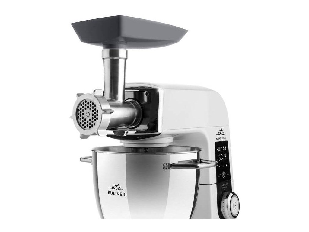 Kuchyňský robot ETA Gratus Kuliner II Origin doprovází celá řada příslušenství a nástavců. Například skleněný mixér o objemu 1,5 l určený pro mixování smoothies, krémových polévek, omáček nebo přesnídávek. Jeho výhodou je, že nepohlcuje pachy ani barvy. Nechybí ani nástavec na strouhání se 3 výměnnými diskovými struhadly. Nastrouhejte si zeleninu, ovoce, brambory, sýry a spoustu dalšího snadno a rychle. Velkým pomocníkem bude i 62mm masomlýnek se 3 hrubostmi mletí. Lehce namelete maso na domácí tatarák, burgery i do klobásek. Ty si navíc s nástavcem na výrobu uzenin můžete klidně rovnou naplnit. Mlýnku nechybí ani nástavec na výrobu Kebbe a tvořítko na vánoční cukroví.