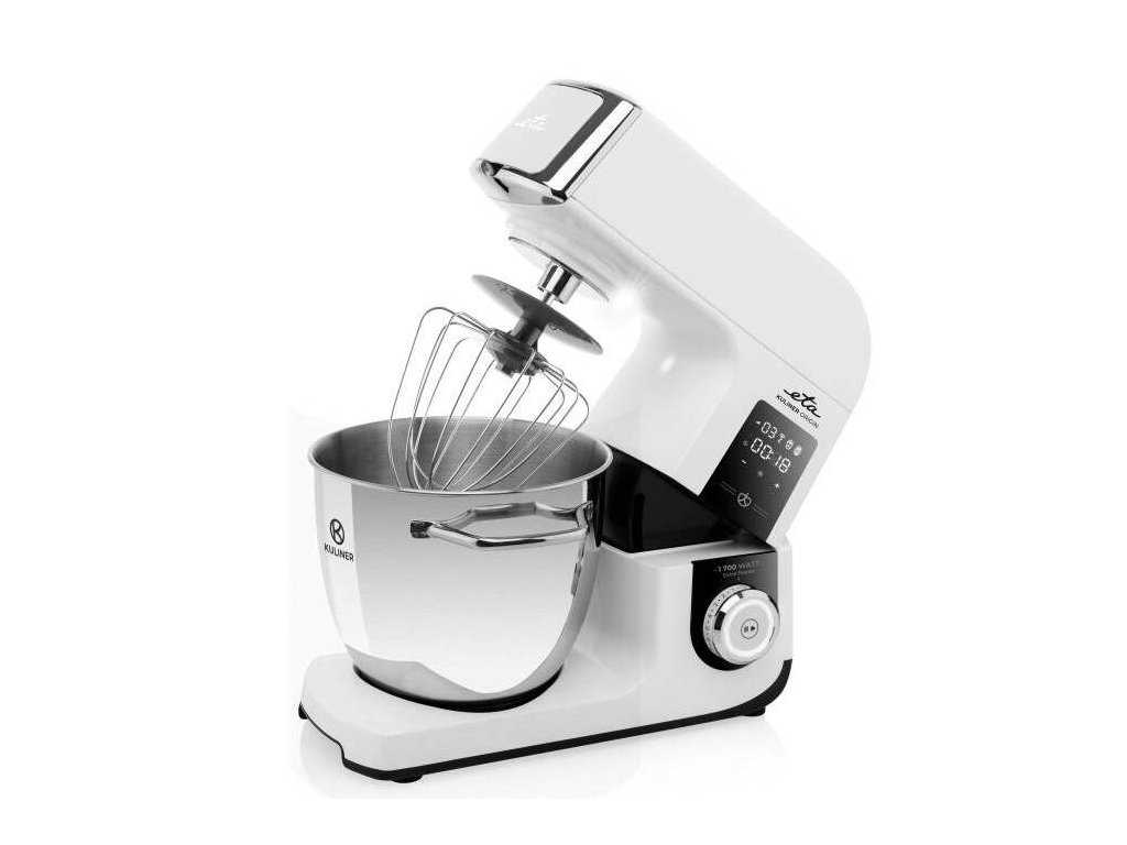 S příkonem 1700 W udrží ETA Gratus Kuliner II Origin nastavené otáčky i při velkém zatížení. Masivní celokovové provedení mu zajistí dlouhou životnost. A ve výbavě má hned 2 nerezové pracovní mísy. Velkokapacitní 6,7 l mísa pojme až 2,5 kg těsta. Doprovází ji průhledný kryt, se kterým můžete bez obav přidávat suroviny za chodu. Menší 3,5 l mísa se bude hodit na krémy a šlehačky a pohodlně ji uskladníte v každé lednici.