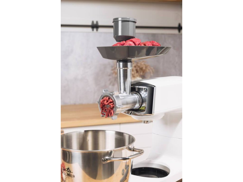 - Robot zvládne hnětení, mísení, šlehání, mixování, mletí masa a strouhání