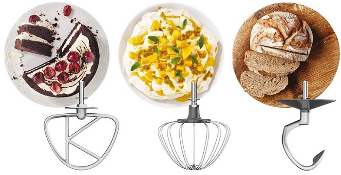 Součástí sady je hnětací hák, šlehací metla a míchací metla. S jejich pomocí vytvoříte všechny základní směsi, a jistě oceníte i možnost nastavení výšky nástavců v míse. Po použití je lze snadno vyčistit, čímž si ušetříte spoustu času.