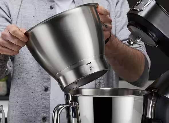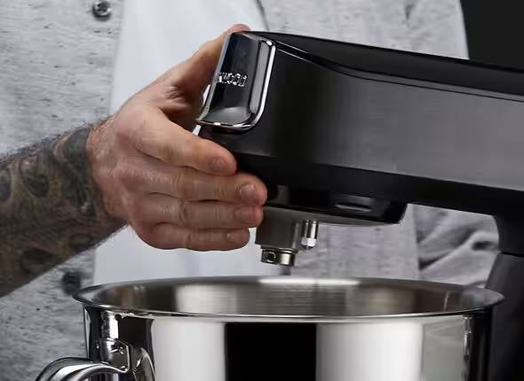 Naše jedinečná hlava LightLift usnadňuje práci s přidáváním přísad do vaší směsi. Jednoduše stiskněte tlačítko pro uvolnění hlavy a zasuňte je. Není potřeba žádné úsilí.