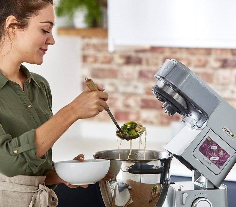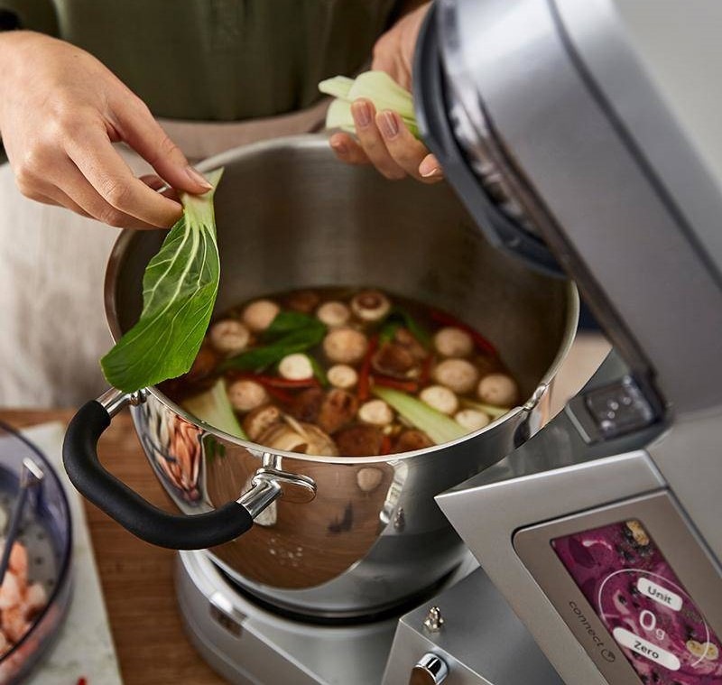 Skutečný robot, který zastane práci šéfkuchaře, Kenwood Cooking Chef XL. Je vybaven výkonem 1500 W a v jedné chvíli zvládá míchání i vaření. Disponuje 13 rychlostmi a technologií indukčního vaření s teplotním rozsahem 20–180 °C. Regulace rychlostí je plynulá a k dispozici je pulzní spínač. Zažijete rychlou a efektivní přípravu, od guláše až po temperování čokolády. Ovládání pomocí dotykového displeje CookAssist™ usnadní výběr s automatickými programy. S připojením k mobilní aplikaci Kenwood World máte přístup k dalším receptům a kuchařským tipům.