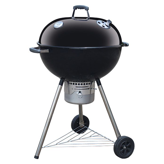 Gril na dřevěné uhlí Bullet s O grilovací plochy 66 cm, vám umožní skvěle připravit pokrmy. Kotel a víko jsou vyrobeny ze smaltovaného porcelánu. Pomocí teploměru zabudovaného do víka můžete zkontrolovat teplotu pečení bez otevření víka a můžete použít otvory na víku k nastavení teploty. Na chromovanou mřížku lze pokládat různé pokrmy, od masa nebo ryb až po zeleninu. Police poskytuje pohodlný úložný prostor pro nádobí, omáčky nebo papírové ručníky. Pro lepší mobilitu grilu jsou k dispozici dvě praktická kolečka.