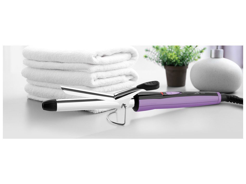 Zkroťte své vlasy a vytvořte si oslnivé lokny během pár minut s klešťovou kulmou ETA Rosalia. Na první pohled vás zaujme svým elegantním designem ve fialové barvě. Hlavní předností této kulmy je ovšem její klasické provedení a jednoduché ovládání. Tubus s nerezovým povrchem má průměr 19 mm a pro bezpečnější manipulaci je zakončený plastovou špičkou, která zůstává vždy chladná.