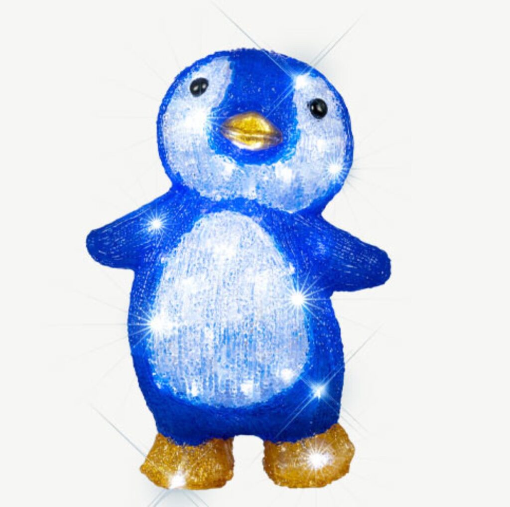 LED dekorace Blachere JTA042 ve tvaru tučňáka obsahuje 48 čistě bílých LED diod a je vhodná jak pro venkovní, tak i pro vnitřní použití. Tento okouzlující svítící tučňák je vyrobený z akrylu, a vytváří slavnostní kouzelnou atmosféru.