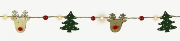 LED girlanda Blachere JFLA109 je dekorativní světelný prvek ideální pro vánoční výzdobu interiéru. Kombinuje dřevěný motiv soba a stromečku s jemným osvětlením pomocí 25 teplých bílých mikro LED diod.