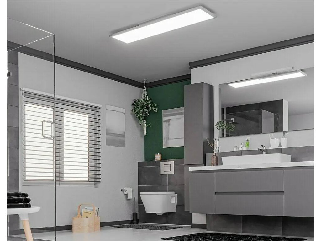 - LED panel / IP44 / 5000 lm / 120 x 30 cm / 45 W / hliník / plast / bílá