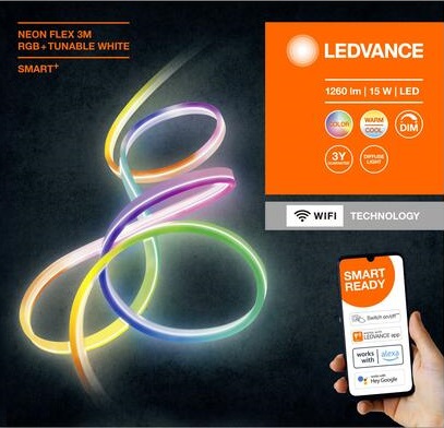 LED pásek LEDVANCE SMART+ Neon Flex Multicolor vás potěší i svou flexibilitou. Může totiž vyzařovat bílé i studené světlo, dá se jednoduše stmívat a také umožňuje výběr z cca 16 milionů barev. Styl osvětlení tak můžete měnit podle své aktuální nálady.
