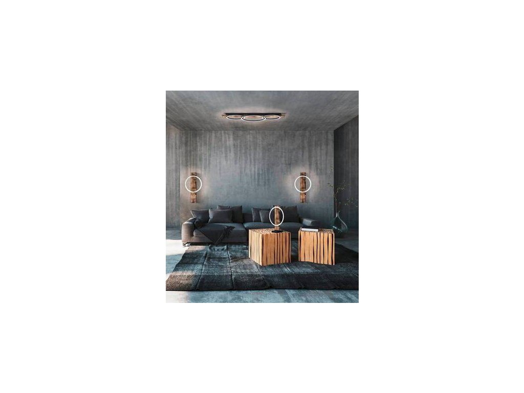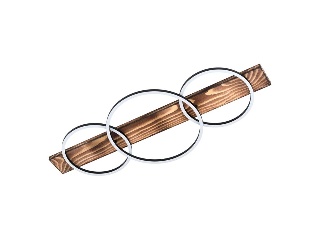LED stropní svítidlo Eglo Boyal je vyrobeno z páleného dřeva v černohnědé barvě, kombinováno se třemi černými kulatými kovovými profily. LED diody v připevněných profilech vyzařují příjemné teplé bílé světlo a jsou neviditelné díky bílým plastovým krytům. Díky materiálovému mixu rustikálního dřeva a chladného kovu stropní svítidlo bez problémů zapadá do moderních designů.