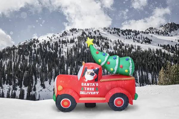 LED světelná dekorace ve tvaru auta se Santa Clausem a vánočním stromečkem přinese do vašeho domova či zahrady pravou vánoční atmosféru. Nafukovací dekorace obsahuje 15 úsporných LED diod, které vyzařují studené bílé světlo.
