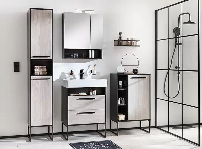 - LED zrcadlová skříňka Jannik / 60 x 70 cm / 2 dvířka / 3 police / 4,5 W / antracitová