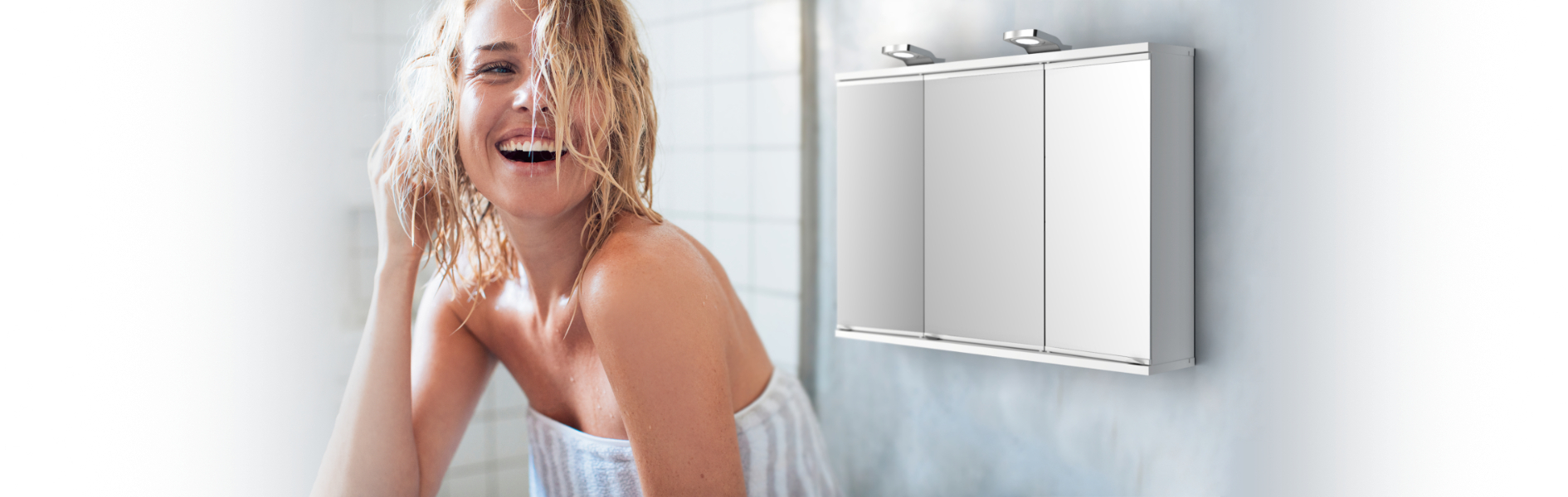 LED zrcadlová skříňka Jokey Lena je vyrobena z vysoce kvalitní MDF a zaujme svým elegantním designem. Má velkorysý zrcadlový povrch, který je rozdělen do tří samostatných dvířek a nabízí to správné místo pro pečující a kosmetické produkty přesně tam, kde jsou potřeba. Praktické LED osvětlení zajistí, že kvalitní křišťálové zrcadlo bude vždy dokonale osvětleno. Zrcadlová skříňka Lena je již předmontovaná a vybavená praktickou kombinací vypínače a zásuvky.