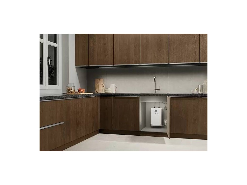 Kompaktní malá akumulační nádrž na vodu AEG KLE 5 U přesvědčí mnoha výhodami dodávky teplé vody pro kuchyňský dřez a umyvadlo. Je připraven k zapojení, spolehlivý, bezpečný a příjemně ekonomický. Kromě toho lze KLE 5 U nainstalovat velmi snadno. Teplota vody je nastavitelná v rozmezí od 35 °C do 85 °C. Akumulační nádrž je připravena k zapojení a je potřeba pouze připojení studené vody a zásuvka. Díky kvalitní tepelné izolaci je malá akumulační nádrž energeticky úsporná.