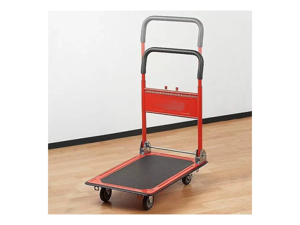 - Manuální skládací přepravní vozík / nosnost 150 kg / ocel / O kola 4" / nastavení výšky 83 - 100 cm / černá / červená