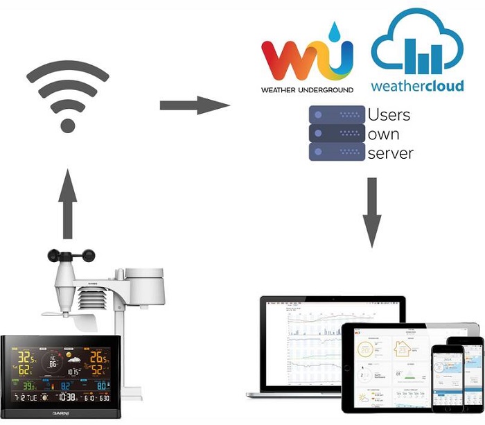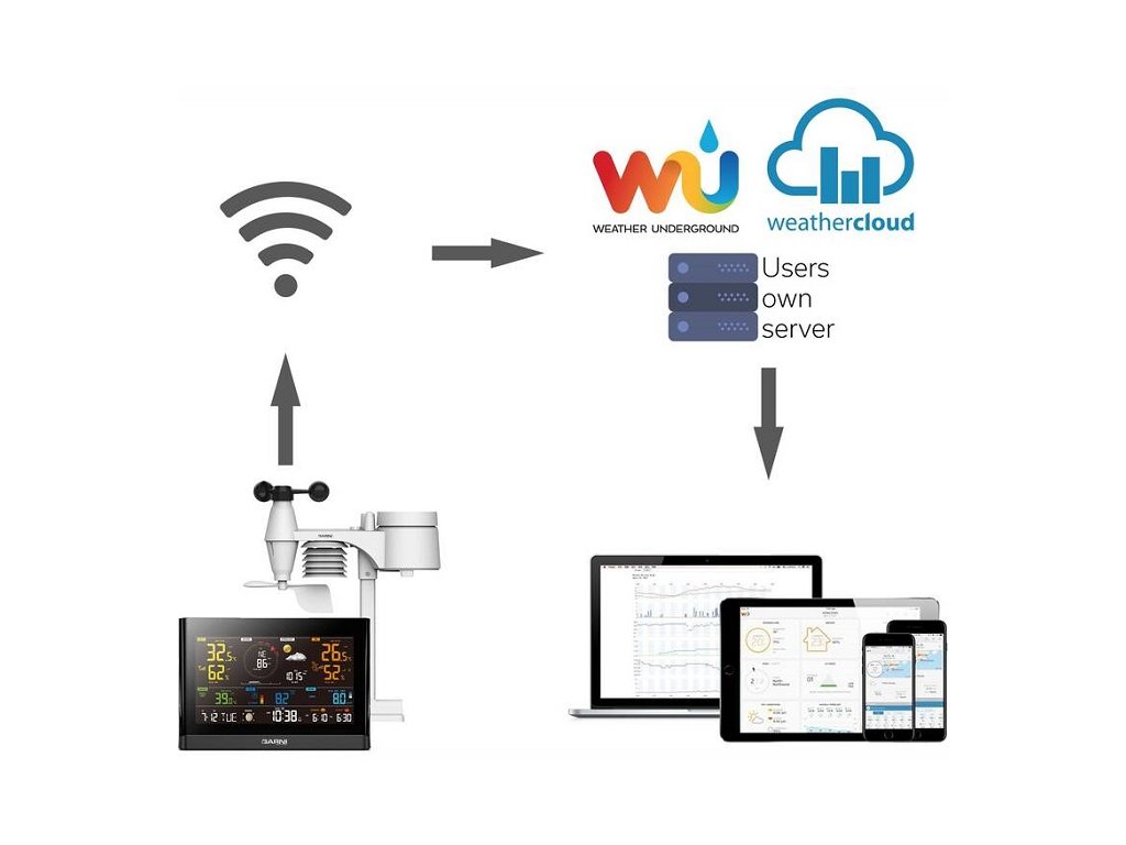Meteostanice zvládá přenos dat skrze Wi-Fi, která jsou naměřena integrovaným čidlem 7 v 1 na server webové služby Weather Underground a Weathercloud, stejně tak se ale nabízí i možnost přenosu dat na uživatelův vlastní server.