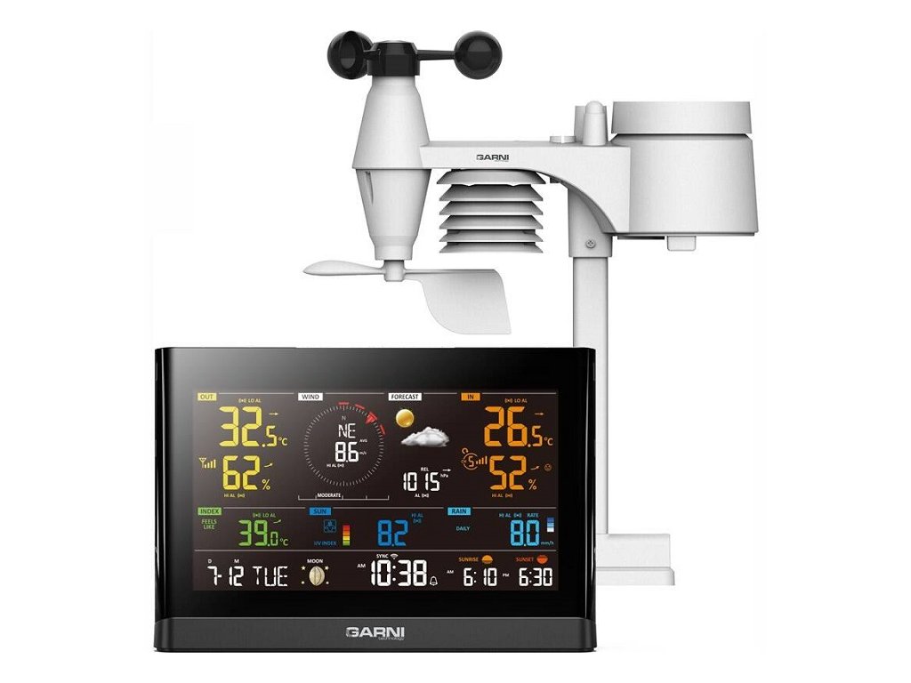 Meteorologická stanice GARNI 1025 Arcus funkcemi a množstvím dat, jež dokáže interpretovat, uspokojí i nejnáročnější uživatele. Zvládá totiž měření teploty, relativní vlhkosti, barometrického tlaku, srážek, rychlosti a směru větru, UV indexu a slunečního záření, stejně jako podporuje připojení až 7 bezdrátových čidel a díky integrované Wi-Fi i napojení na webové služby Weather Underground a Weathercloud. Všechny naměřené údaje přitom servíruje skrze velký VA displej, meteostanice také nabízí obrovské možnosti personalizace, včetně různých alarmů.