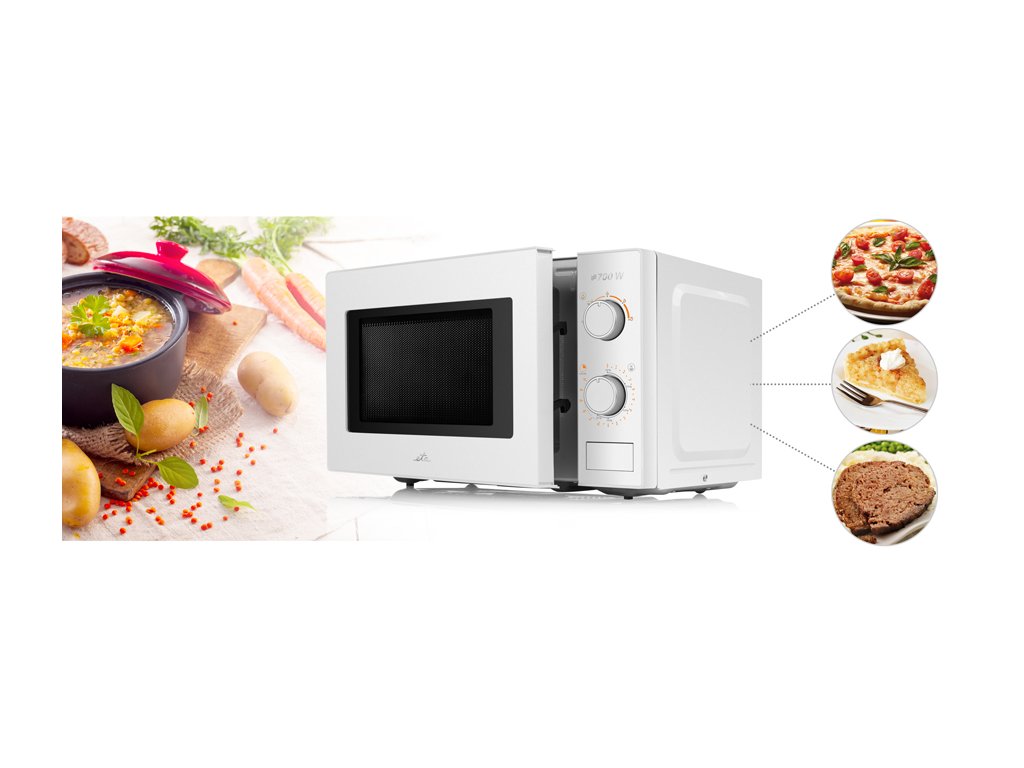 Pořiďte si kvalitní mikrovlnnou troubu od tradiční české značky ETA. Disponuje jednoduchým ovládacím systémem. Mechanicky si snadno nastavíte jak dobu vaření, tak i výkon mikrovln. Maximální mikrovlnný výkon je solidních 700 W.