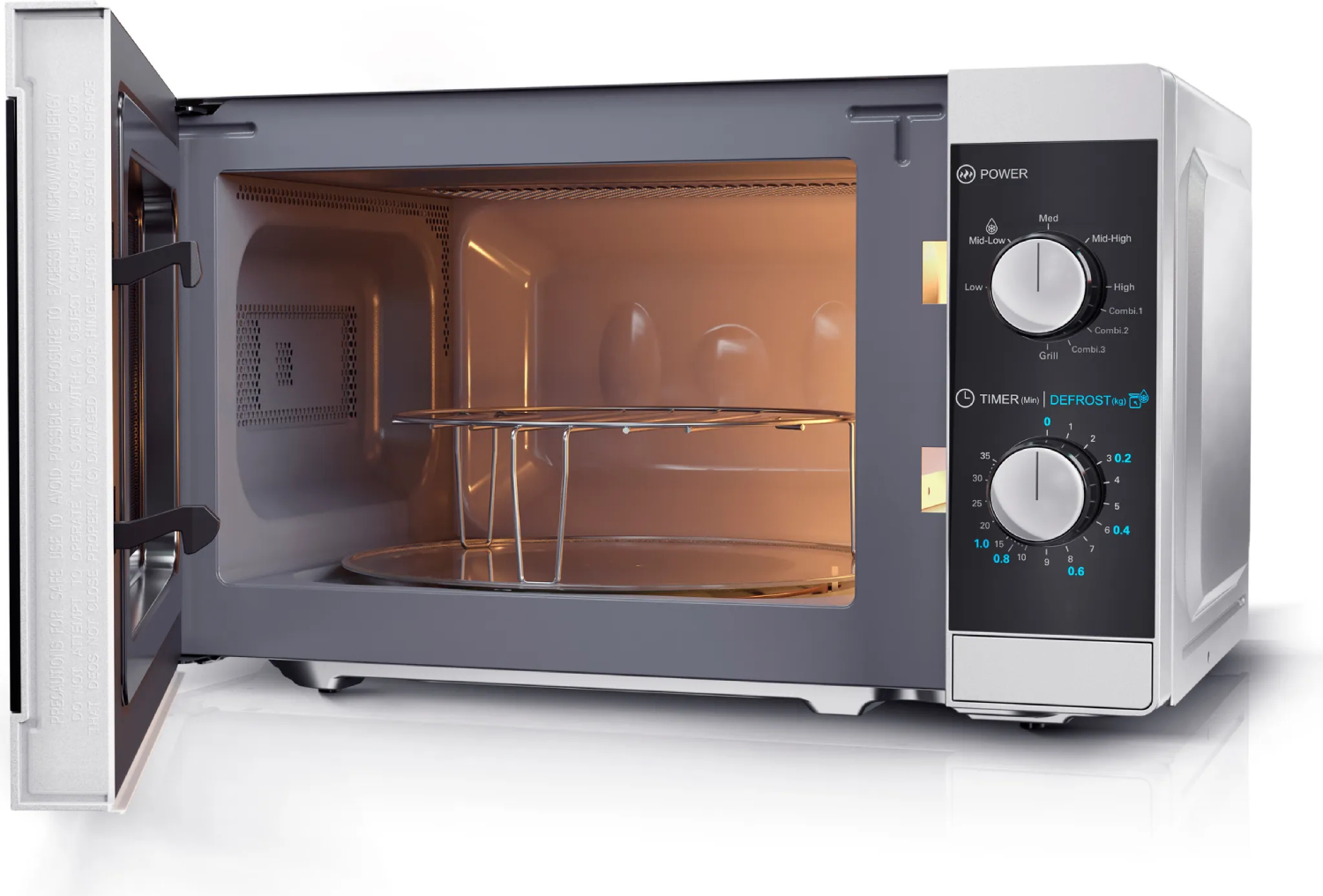 Trouba disponuje objemem 20 l a má otočný skleněný talíř s průměrem 25,5 cm. Vysokofrekvenční elektromagnetické vlnění šetří energii i čas. Vnitřní osvětlení vám poskytne dokonalou kontrolu během přípravy a vnitřní povrch se v případě potřeby velmi dobře čistí. Balení obsahuje grilovací rošt s rozměrem 22 × 6,6 cm.