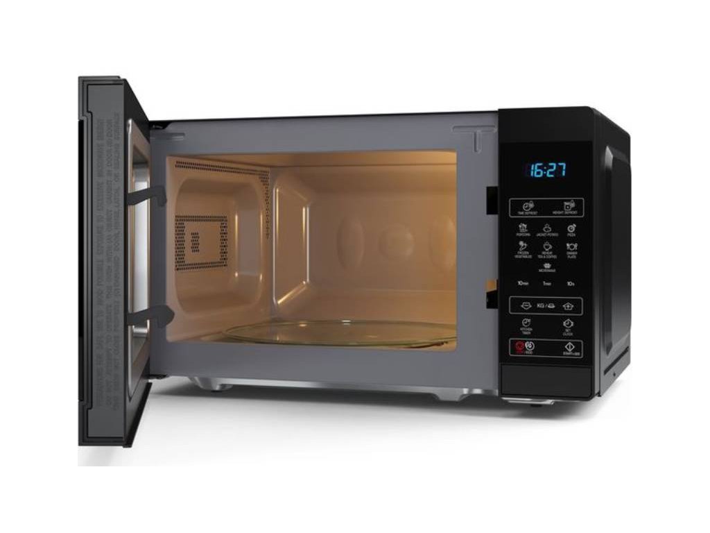 Mikrovlnná trouba Sharp YC-MS02U-B je kompaktní černá mikrovlnná trouba s objemem 20 l a výkonem 800 W, která nabízí 11 úrovní výkonu, rozmrazování, digitální ovládání s časovačem a LED displejem a otočný talíř Ø 25,5 cm pro rovnoměrné ohřívání jídel. Je ideální do malých i středních kuchyní jako univerzální pomocník pro ohřívání a základní úpravu potravin bez grilování či konvekce.