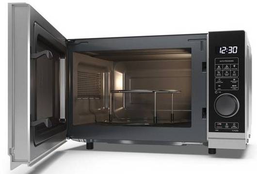 Funkce grilu dosahuje výkonu 900 W a s praktickým roštem zvládnete připravit křupavé kuře. Mikrovlnná trouba je vybavena funkcí pro rozmrazování, ECO funkcí a časovačem. Otevírání dveří je velmi pohodlné a dětská pojistka brání nechtěné změně nastavení. Vnitřní prostor má LED osvětlení.