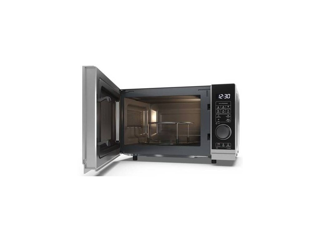 Funkce grilu dosahuje výkonu 900 W a s praktickým roštem zvládnete připravit křupavé kuře. Mikrovlnná trouba je vybavena funkcí pro rozmrazování, ECO funkcí a časovačem. Otevírání dveří je velmi pohodlné a dětská pojistka brání nechtěné změně nastavení. Vnitřní prostor má LED osvětlení.