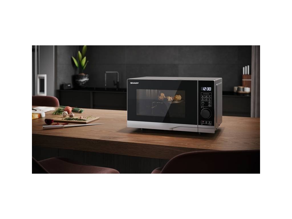 - Mikrovlnná trouba Sharp YC-PG204AE-S s funkcí grilu / 700 W / O 24,5 cm / 20 l / 10 stupňů výkonu / stříbrná