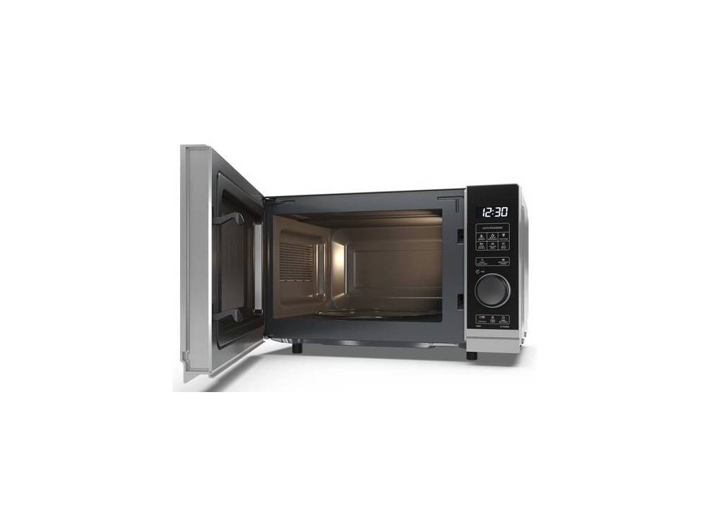 Mikrovlnná trouba je vybavena funkcí pro rozmrazování, ECO funkcí a časovačem. Otevírání dveří je velmi pohodlné a dětská pojistka brání nechtěné změně nastavení.