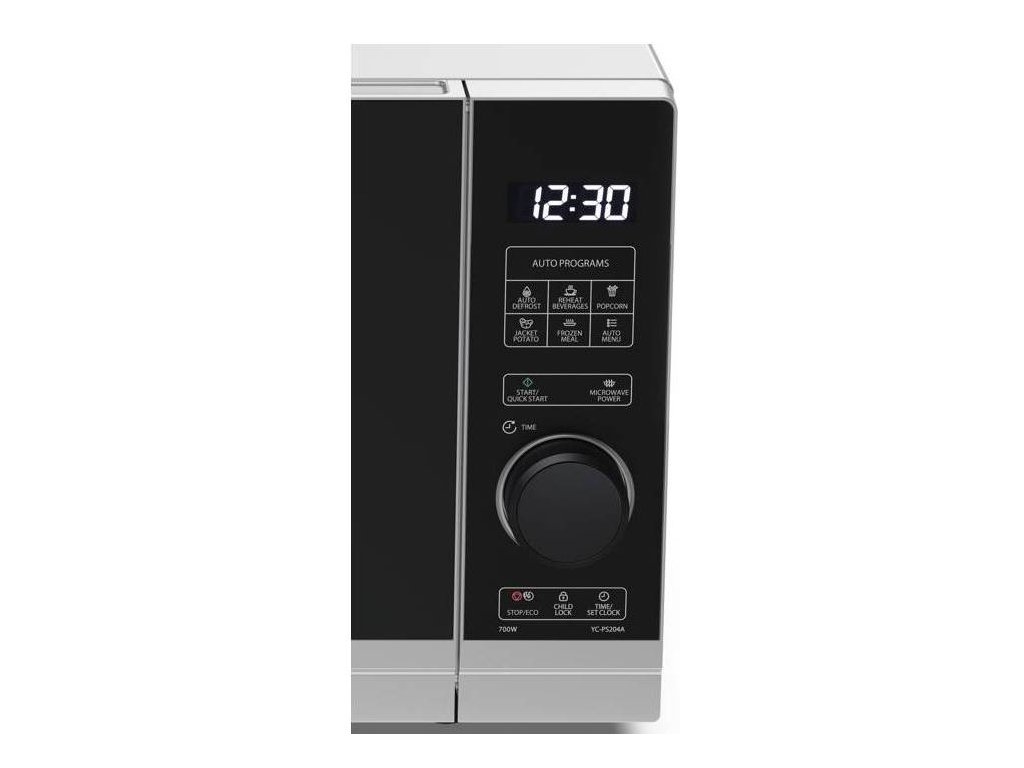 Mikrovlnná trouba Sharp YC-PS204AE-S patří do každé moderní kuchyně. Disponuje výkonem 700 W a objemem 20 litrů. K dispozici je 10 stupňů výkonu. Ovládání je mechanické a displej zobrazuje hodiny. Průměr skleněného talíře je 24,5 cm a vnitřní prostor je z odolného nerezu.