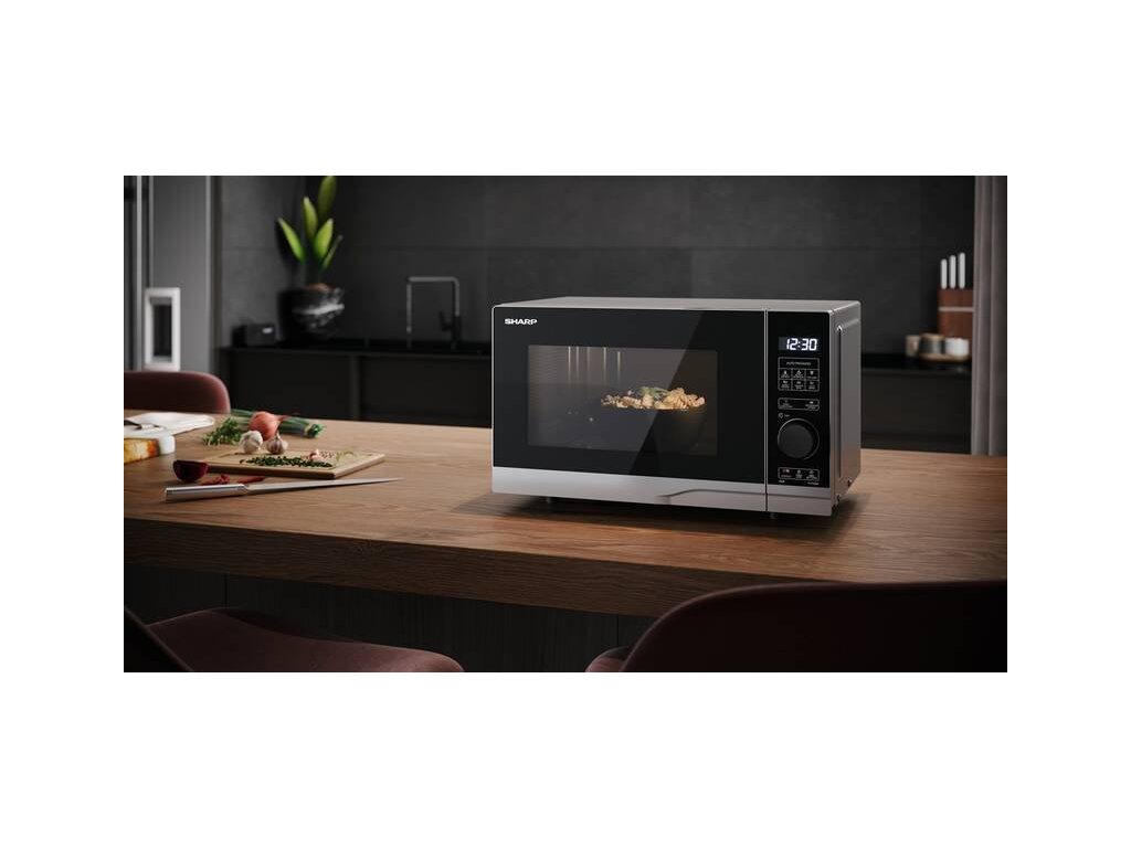 Mikrovlnná trouba Sharp YC-PS204AE-S / 700 W / 20 l / Ø talíře 24,5 cm / stříbrná