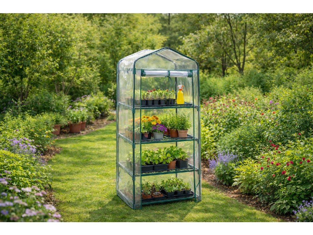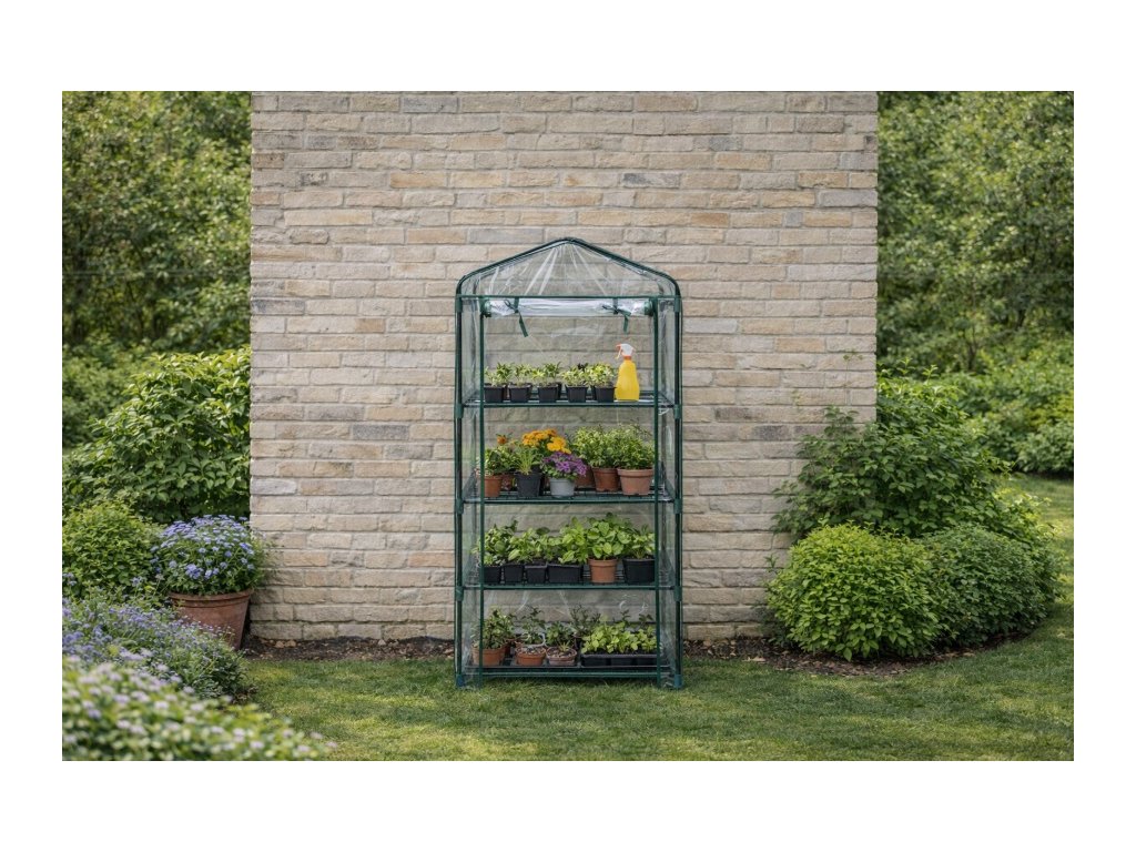 Přehledné uspořádání díky policímSoučástí skleníku jsou čtyři praktické police, které umožňují efektivní využití prostoru.