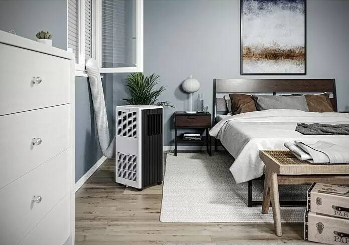 Mobilní klimatizace 3v1 Voltomat COOL SMART Wi-Fi s chladicím výkonem 9000 BTU a možností inteligentního ovládání je vynikající způsob ochlazení vašeho domu či bytu během horkých letních dnů. Kromě chlazení nabízí také klimatizace i funkci odvlhčovače vzduchu i ventilátoru. Provoz klimatizace je energeticky úsporný, bez problémů zchladí místnosti až do 26 m². Klimatizace má k dispozici 2 stupně výkonu, funkci časovače, autodiagnostický nástroj včetně funkce autorestartu. Klimatizaci lze prostřednictvím bezdrátového připojení zapojit do chytré domácnosti a snadno ji ovládat pomocí aplikace "Smart Life - Smart Living" kompatibilní pro smartphone. Kromě toho lze měnit její nastavení pomocí hlasových asistentů jako Google Assistant či Amazon Alexa nebo za pomocí dálkového ovládání.