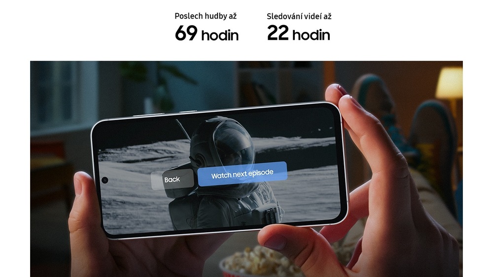 Získejte spolehlivou platformu pro dlouhotrvající práci i zábavu. Telefon Galaxy S23 FE je vybaven vysokokapacitní 4500mAh baterií, která poskytne dostatek energie pro až 22 hodin sledování obsahu a 69 hodin poslechu hudby. Navíc využívá pokročilé algoritmy k tomu, aby optimalizovala spotřebu energie v závislosti na momentálních požadavcích, takže na jedno nabití dokáže sloužit ještě déle.