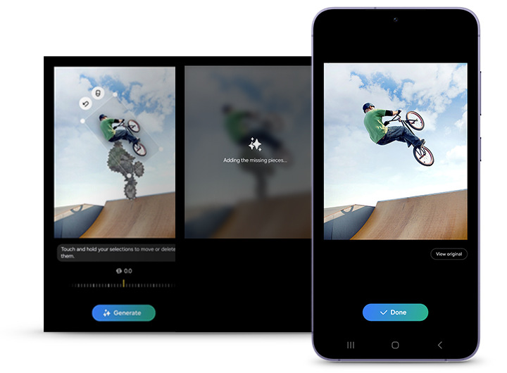 Vymažte ze svých fotografií nežádoucí postavy a obličeje a užívejte si bezchybné snímky z turistických destinací. Funkce Photo Assist pomocí nástrojů poháněných Galaxy AI* inteligentně odstraní nebo přesune označené elementy a poté přirozeně vyplní prázdný prostor, takže změnu na fotografii nepoznáte.