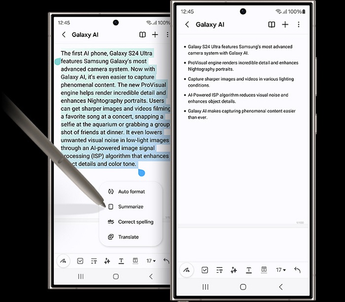 Využíváte pro psaní poznámek propojení smartphonu s klávesnicí a Samsung DeX nebo dáváte přednost psaní přímo na displeji? V obou případech vás potěší, že funkce Note Assist dokáže vaše dlouhé zápisky automaticky shrnout do pár přehledných bodů. Všechny své nejdůležitější myšlenky tak budete mít hned před očima bez zdlouhavého hledání nebo zvýrazňování v textu.