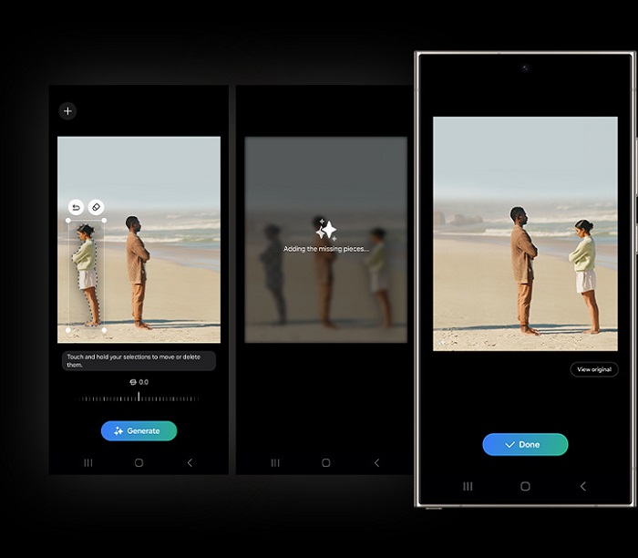 Vymažte ze svých fotografií nežádoucí postavy a obličeje a užívejte si bezchybné snímky z turistických destinací. Funkce Photo Assist pomocí nástrojů poháněných Galaxy AI* inteligentně odstraní nebo přesune označené elementy a poté přirozeně vyplní prázdný prostor, takže změnu na fotografii nepoznáte.