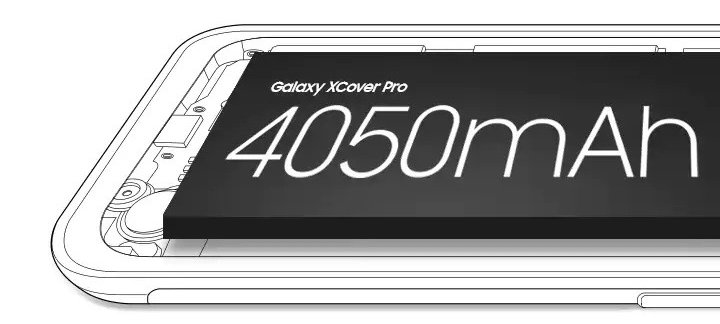 Robustnost a sofistikovanost smartphonu Galaxy XCover Pro je reflektována i v jeho baterii se skutečně dlouhou výdrží. Vyznačuje se kapacitou 4050 mAh, která se postará o to, aby vás smartphone provázel na každém kroku.