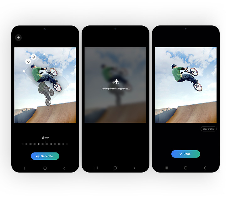 S aplikací Photo Assist můžete upravovat své fotografie jako profesionál, aniž byste museli používat specializovaný software. Využijte možnosti Galaxy AI* k bezproblémovému odstraňování nechtěných objektů nebo doplnění prázdných míst na fotografiích. Vadí vám nežádoucí prvek na pozadí? To není problém. Všechny tyto nástroje pro úpravu jsou nyní snadno dostupné, což vám usnadní úpravu jakéhokoli vašeho snímku.